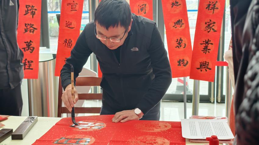 活动现场,红幅铺展如霞,笔墨氤氲似雾。师生们饱蘸浓墨、提笔挥毫,行云流水间,一副副寓意吉祥、笔力遒劲的春联跃然纸上,苍劲灵动的字体里,尽是学校师生对新岁的美好期许!