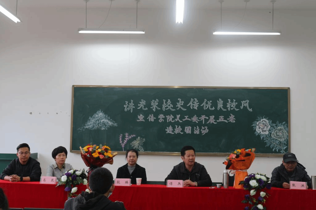 金秋时节,丹桂飘香,正值农历九月初九重阳节,在这个特殊的日子里,国土空间信息学院关工委于10月14日中午在勘物楼B303开展“五老进校园”活动。此次活动特邀请到原校纪委书记谭兵老师和原教务处副处长殷瑛老师,参加此次活动的还有国土空间信息学院党总支书记高昆老师、院长张洪老师、团总支负责人马佳老师以及21级学生代表。