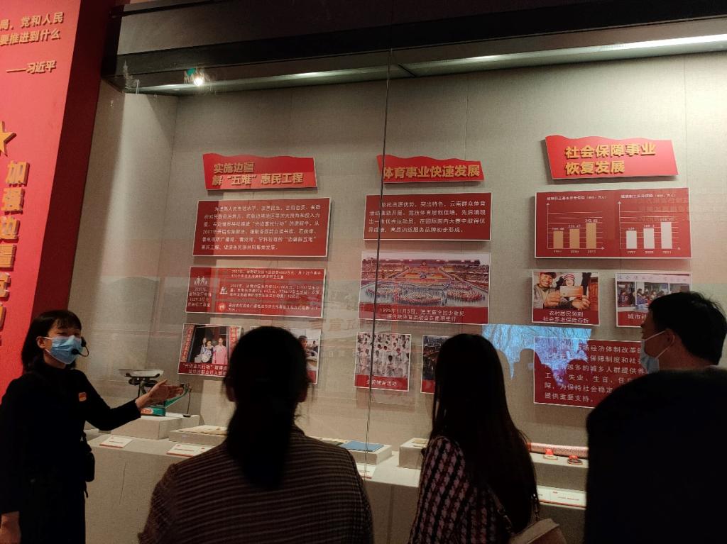 展厅内,各位师生跟随讲解员的步伐,以时间为轴参观了“浴血奋斗:为云南解放而斗争”“改天换地:走上社会主义康庄大道”“日新月异:中国特色社会主义的云南实践”“跨越发展:奋力谱写中国梦的云南篇章”四个篇章的展厅,并适时驻足拍照、讨论。大家在参观中深受3D裸眼全息影像技术、逼真场景复原等一件件珍贵文物、一幅幅生动照片的吸引,深刻领会到云南百年来各个历史阶段的重大事件、重要成就,学习到党的十八大以来发生的历史性变革、取得的历史性成就,纷纷表示将传承红色基因,赓续历史荣光,以实际行动推动党史学习教育走深走实。