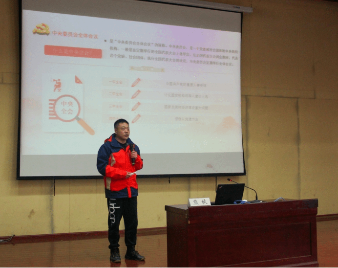 随后,马克思主义学院熊秋老师领学十九届六中全会精神。熊秋老师从“什么是中央全会?”切入,诠释“一中全会”到“七中全会”的含义。紧接着,他开始着重介绍十九届六中全会内涵,提到,党的十九届六中全会将会是重要历史时间节点召开的一场具有全局性,历史性意义的重要会议,总结了党的百年奋斗重大成就和历史经验,强调全党要坚持唯物史观和正确的党史观。
