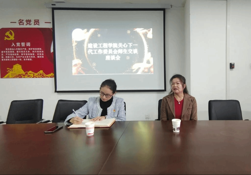 座谈会上,李艳老师首先向同学们介绍了联系学院开展此项工作的杨晓兰主任,紧接着介绍了学校成立二级学院关心下一代工作委员会的目的与意义以及建设工程学院的基本情况和学生特点。杨晓兰老师结合自身37年的从教经历,与新进教师和同学们分享了学校改革发展的不易,个人成长提升的经验等,希望同学们牢记“能力、态度”两个词,珍惜当下,努力学习,勇于实践,同时也深刻阐释了关爱学生的重要意义。紧接着两位老师鼓励同学们畅所欲言,提出自己在生活上学习上遇到的问题和困惑,积极与老师沟通交流,解决遇到的困难。