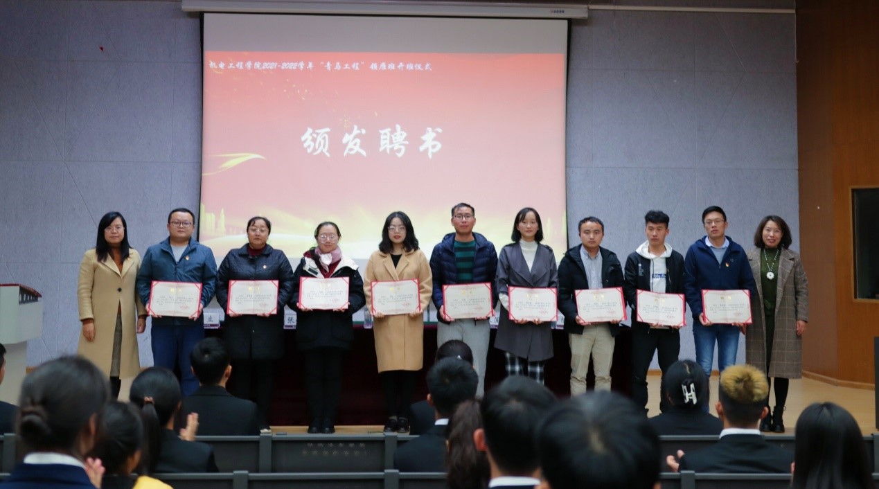 第四项议程:张延星老师和张俊妍老师为“青马工程”领雁班指导老师颁发聘书。