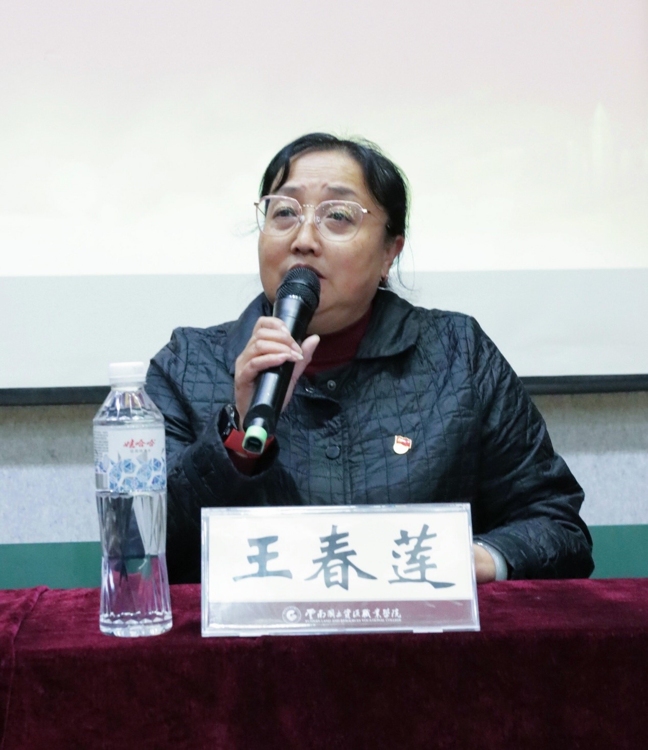 第二项议程:机电工程学院党总支书记王春莲致辞。她希望全体学员深刻认识“青马工程”的内涵气质和现实意义,认真完成本期培训的每一次学习、实践和研讨;坚持理论联系实际,理论指导实践,在学中做,在做中学,更好更快的成长为一名坚定的青年马克思主义者。