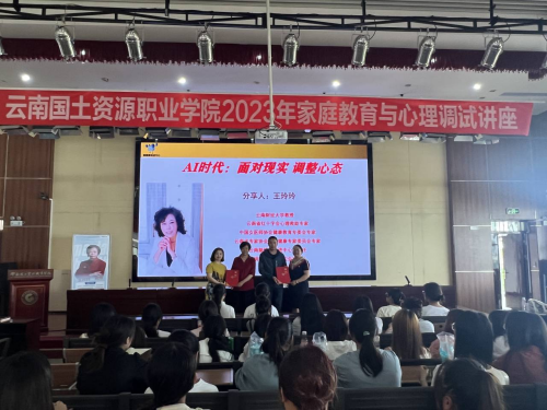为充分发挥家庭家教家风建设,加强家庭在基层社会治理中的重要作用,形成良好的爱国爱校爱家、向上向善、共建共享的社会主义家庭文明新风尚。学校妇联于5月24日下午,在宝鼎讲堂举办了《人工智能时代:调整心态面对现实》专题讲座。此次讲座由云南财经大学教授、云南脑健康促进中心副主任、云南省红十字会心理救助专家、昆明家庭教育研究会副会长王玲玲教授主讲。