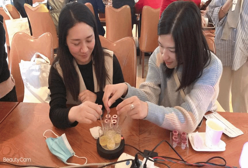 之后,老师们来到山水湖畔会所。活动得到了山水地产公司的大力支持,公司为老师们准备了精美的冷餐,用餐后,公司所请的芳疗师为老师们讲解了精油知识,介绍了舒缓工作压力的方法;在芳疗师的指导下,老师们亲手制作了手工香皂和口红,成品出来的时候,老师们兴奋不已。