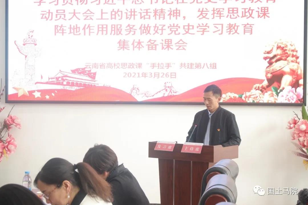 2021326日,云南省高校思政课“手拉手”共建第八组集体备课会在云南新兴职业学院举行。此次备课会由昆明医科大学马克思主义学院主办,云南新兴职业学院承办,备课会主题为“学习贯彻习近平总书记在党史学习教育动员大会上的讲话精神,发挥思政课阵地作用服务做好党史学习教育”,马克思主义学院24名教师代表参加了此次共建活动。