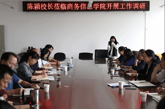 陈颖校长一行对商务信息学院工作的指导,体现了学校对商务信息学院的重视和支持,我院将结合学校领导给予的指导和帮助转化为推进学院发展的动力,为实现学校的“十四五”发展目标贡献出商务信息学院的力量。