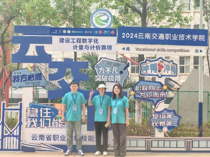 2024年云南省职业院校技能大赛建设工程数字化计量与计价赛项于9月26日—27日在云南省交通职业技术学院举行。由建设工程学院教师王绮滢带队,由2022级学生曹俊雄、钟英杰、钱还玲和2023级学生罗春喜、温欣怡、苏旭峰分别组成的两支参赛队伍参加了比赛,由王绮滢、丁佳佳、李葆康三位老师作为指导教师。经过激烈角逐,我校2022级三名学生组成的参赛队荣获省级二等奖。