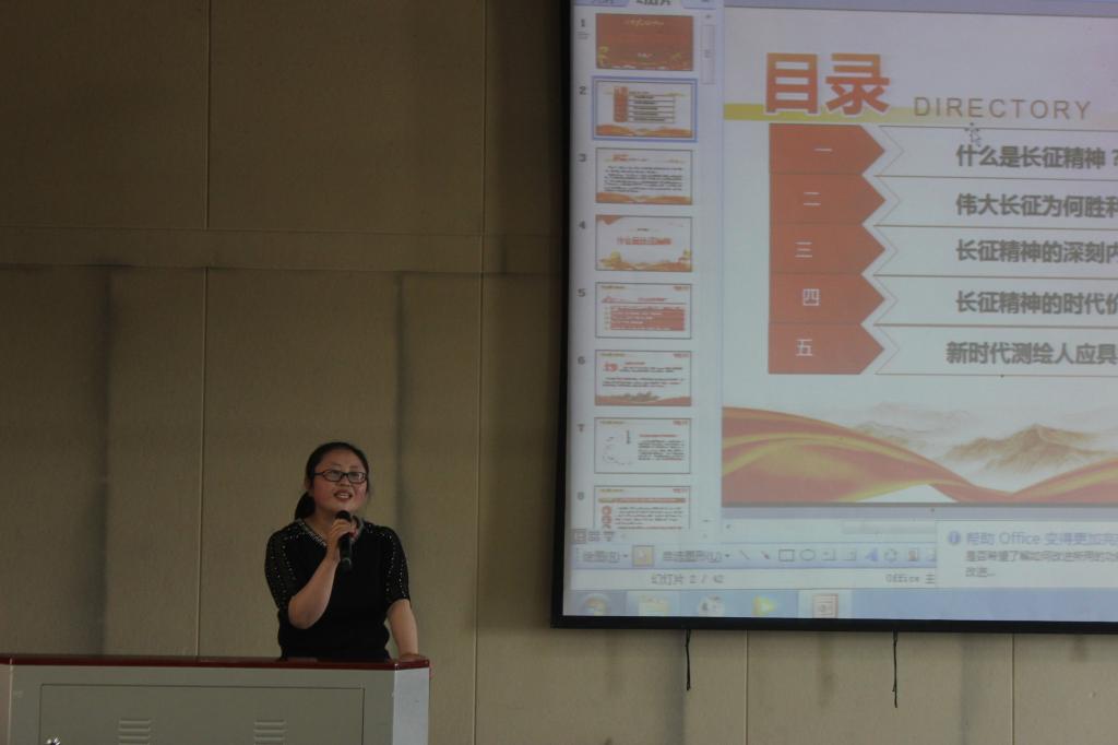 4月22日,我院针对19级学生进行了三场党史专题讲座,主讲人分别是申锦华、王军芳、袁锋三位老师。此次讲座的主题为“长征精神与测绘人”,将长征精神与我院测绘相关专业充分结合在一起,启发同学们思考测绘人的精神品质,引导他们更清晰地认知所学专业,进而做好人生职业规划。另外,讲座上,老师们还向同学们推荐了反映测绘人工作生活的文学影视作品,希望同学们能够继承和弘扬长征精神,做一个不怕苦、能吃苦、勇拼搏的测绘人。