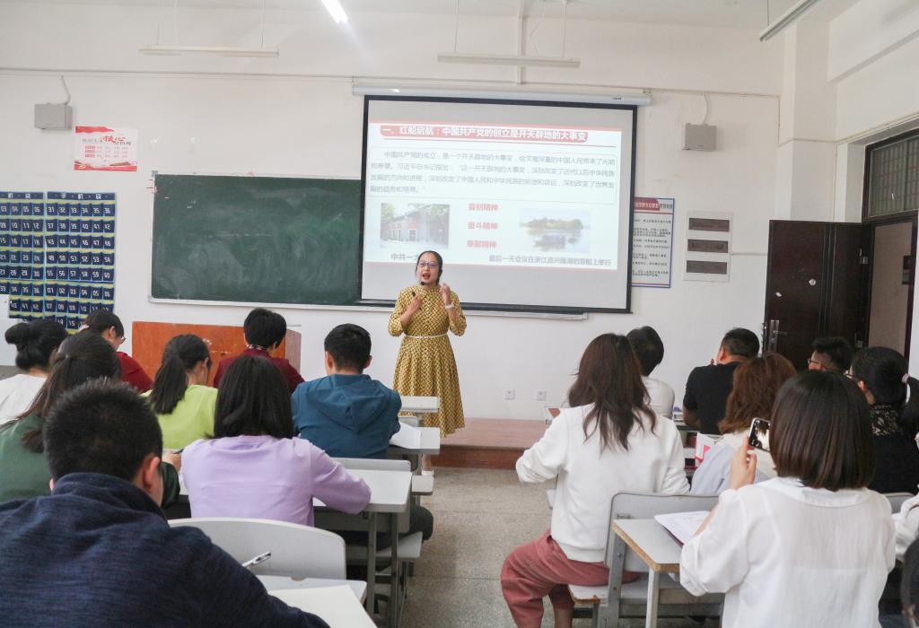 4月21日中午,马克思主义学院副院长张颖莅临我院,为我院全体教师、18级学生预备党员、19级入党积极分子以“学好党史,培根铸魂”为题进行专题宣讲,张老师以“红船启航”讲述了中国共产党创立的艰辛,并总结了“红船精神”的内涵即首创精神、奋斗精神和奉献精神。接着,她用“13”,“72”,“94”这三组数字引出了中国共产党从“站起来”到“富起来”再到“强起来”的发展历程。随后,她又结合典型事例讲述了“中国共产党为什么能”,让在场的老师同学们对党有了更深刻的认识和理解。最后,张老师结合我院专业课向我院全体教师介绍了“课程思政”是什么、为什么、怎么干,这使我院老师深受启发,进一步明确了今后针对所授课程开展“课程思政”的目标和方向。