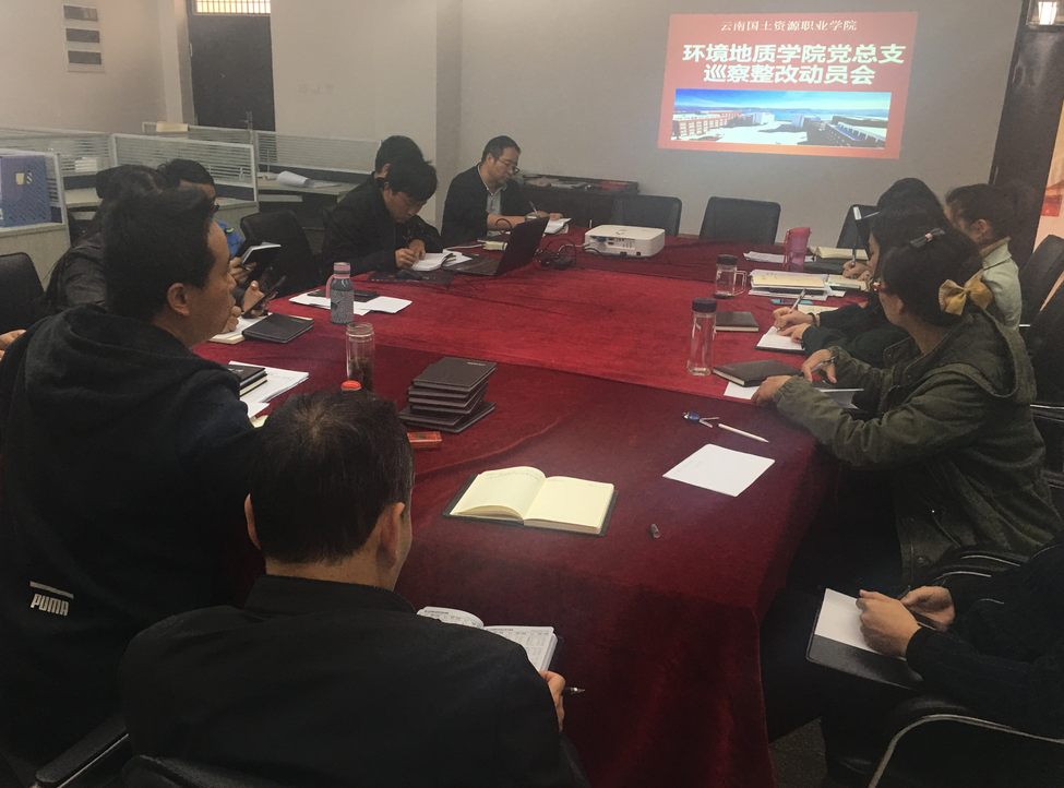 2019年3月1日14点,环境地质学院召开全体党员大会暨巡察整改动员会,会议由党总支书记袁佳主持。