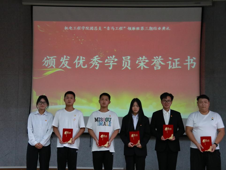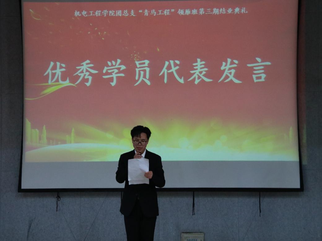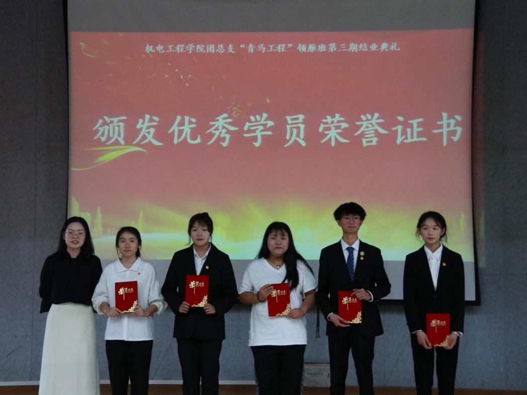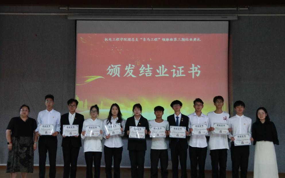 为认真贯彻落实习近平总书记关于青年工作的重要思想,切实发挥“青年马克思主义者培养工程”的积极作用,机电工程学院团总支“青马工程”领雁班第三期共举行16次校内外培训活动。6月3日晚17:00,学院在红山讲堂举行了本期青马班的结业典礼,机电工程学院党委书记王春莲、团总支负责人马玲、团总支副书记蒋知言、段金娈以及领雁班第三期全体学员共同参与。