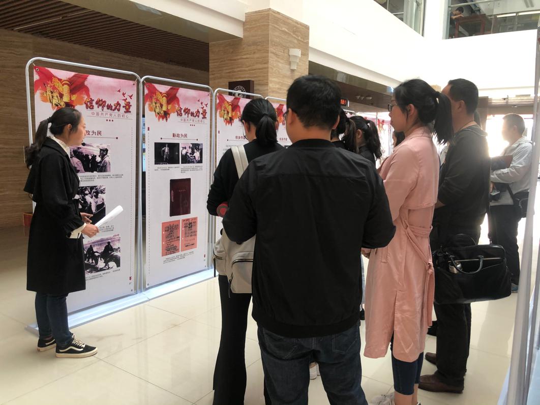 为深入学习贯彻习近平新时代中国特色社会主义思想,激励广大党员干部“不忘初心、牢记使命”,引导党员干部坚定理想信念,加强党性修养,发挥先锋模范作用,机电工程学院党总支于11月1日在观山楼一楼图书馆大厅观看学习《信仰的力量:中国共产党人的初心》,党总支副书记张颖、学院院长秦忠及全体党员参加此次学习。