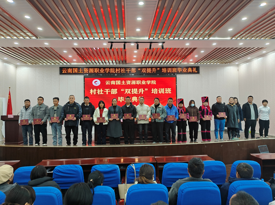 典礼由绿春县委党校副校长杨勇灵主持。李普成在讲话中充分肯定了“双提升”项目对绿春基层干部队伍建设的重要意义,并勉励学员坚守初心、学以致用,在乡村振兴一线担当作为。张云霞代表学校向全体毕业生表示热烈祝贺,强调学校始终秉持“绿春所需,国土所能”的帮扶理念,将持续为绿春发展提供智力与人才支持。随后,与会领导为毕业生代表颁发毕业证书。