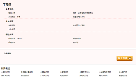 5.选择丁图远(烈士英名录中可任意选择)进入下图