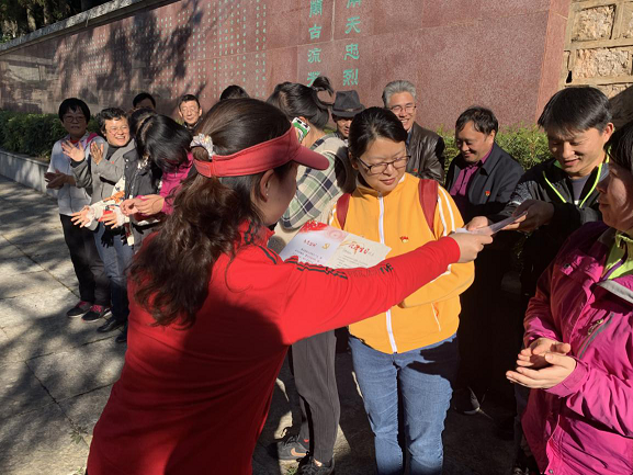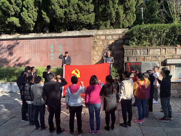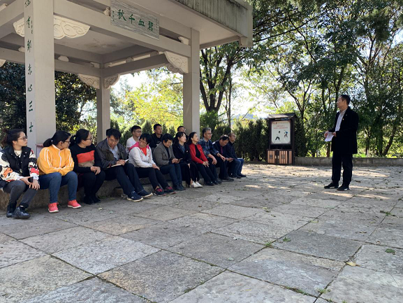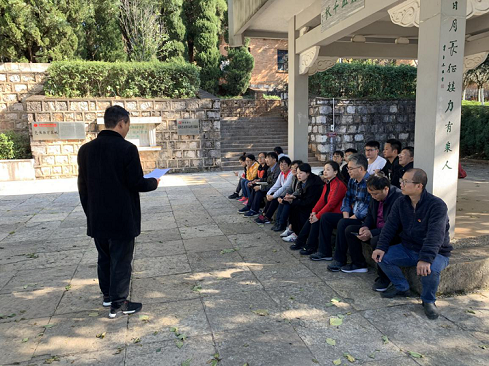 为进一步弘扬爱国主义精神,缅怀革命先烈,提高爱国意识,铭记历史苦难,资源勘查学院党总支于2019年11月22日在昆明黑龙潭公园开展了“不忘初心、牢记使命”主题教育之领导干部讲党课暨志愿者服务活动。活动由资源勘查学院党总支副书记李倩主持。