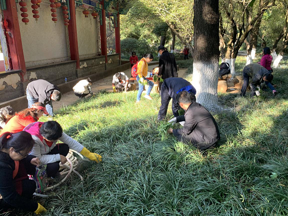 之后,资源勘查学院分会在黑龙潭公园开展了志愿服务活动,为公园草坪拔除杂草,分会全体教职工都积极参与到志愿服务中。