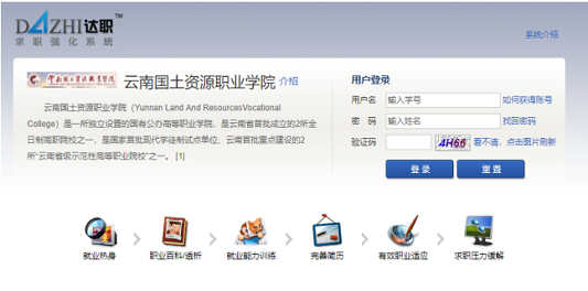 根据《云南国土资源职业学院关于开通达职求职能力强化系统的通知》,精心组织学生登录系统,帮助学生提高求职能力,疏解学生求职压力。