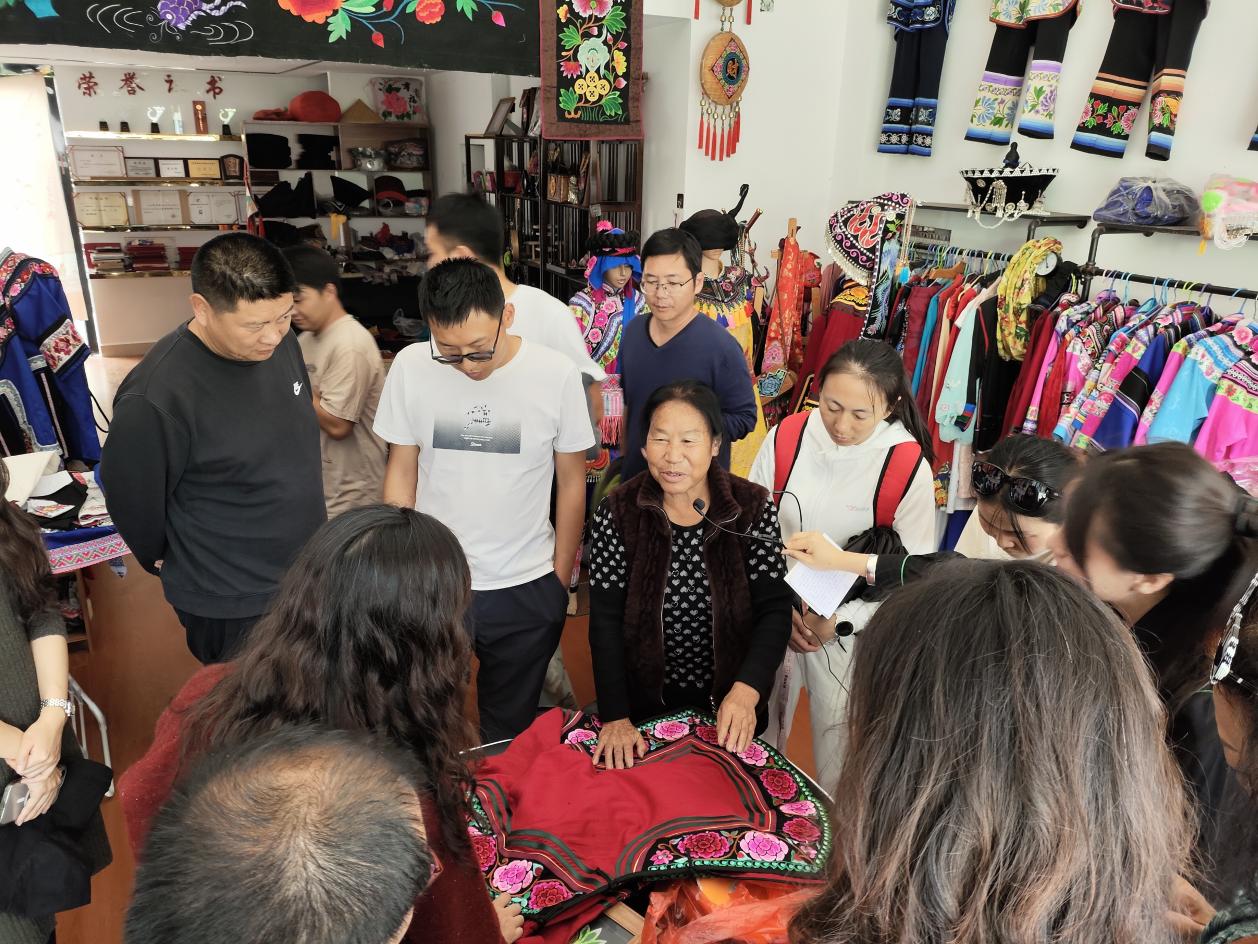 活动期间,素质教育学院全体教职工还参观学习了武定非物质文化遗产彝绣,听取了国家级非物质文化遗产传承人对设计图案、色彩搭配、刺绣针法等介绍。大家纷纷表示,通过对彝绣的认识,感受到彝绣那传统与现代、传承与创新,技术与艺术交融的魅力,充分展示了中华民族传统服饰文化内涵,对今后开展铸牢中华民族共同体意识教育和美育教育有很大的启示作用。