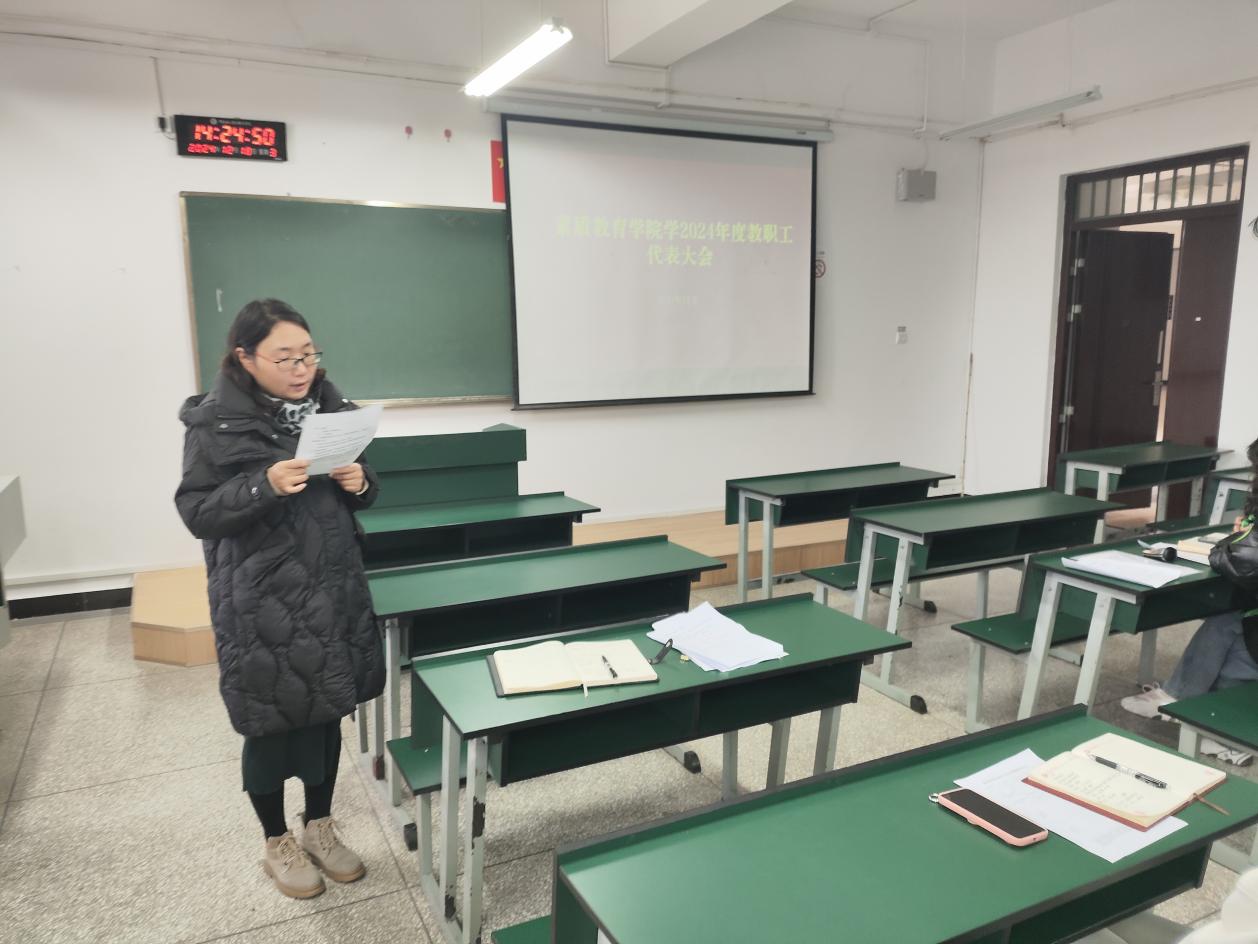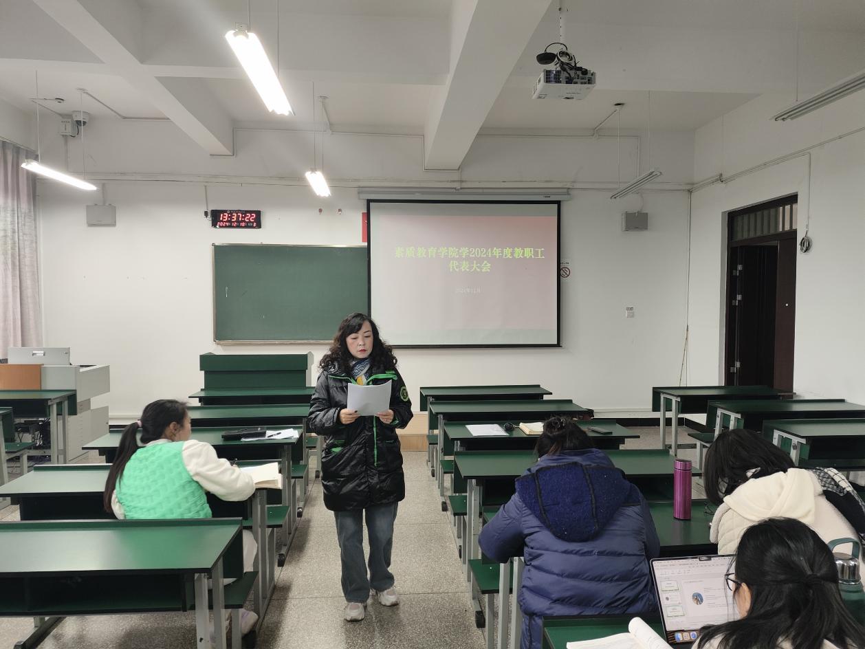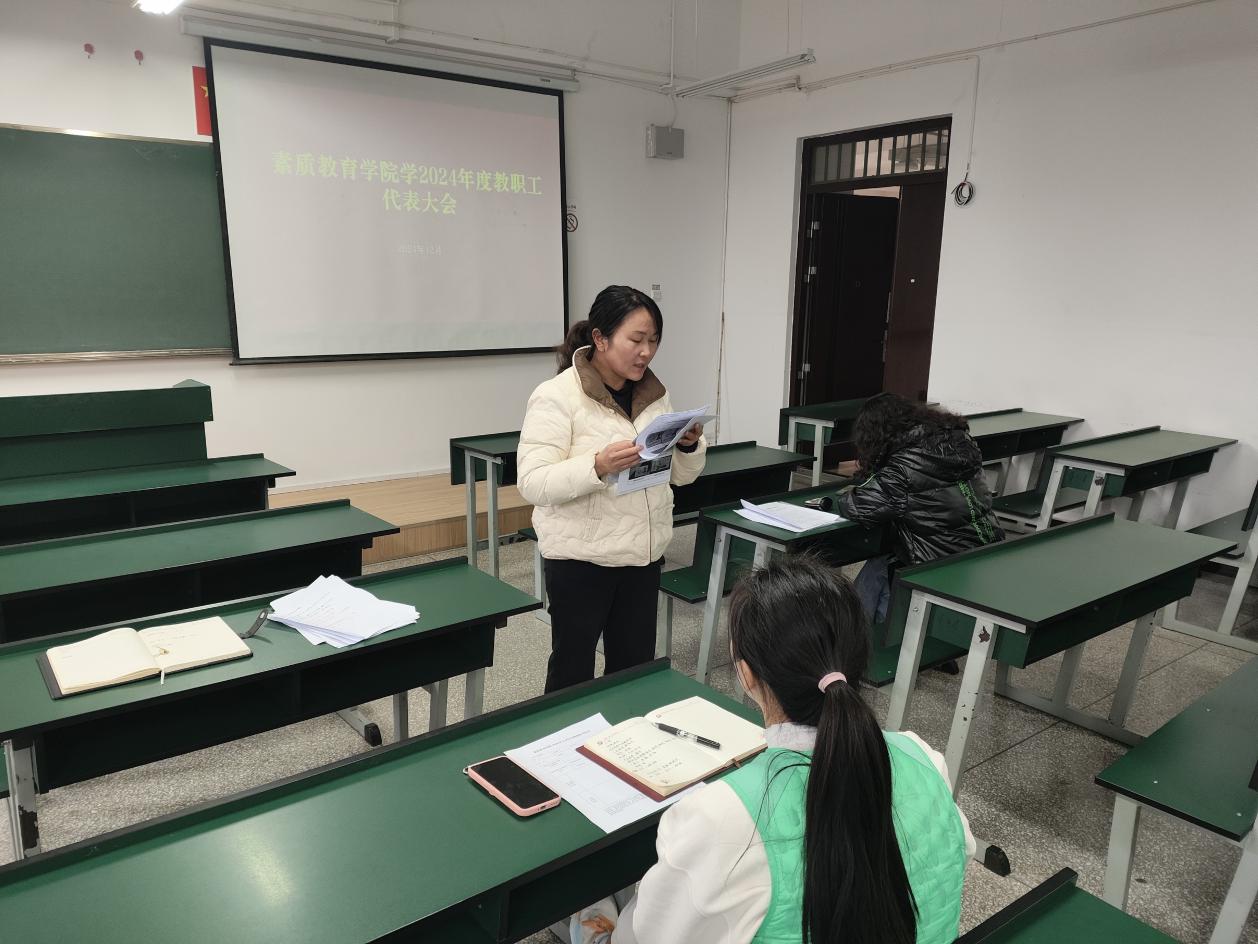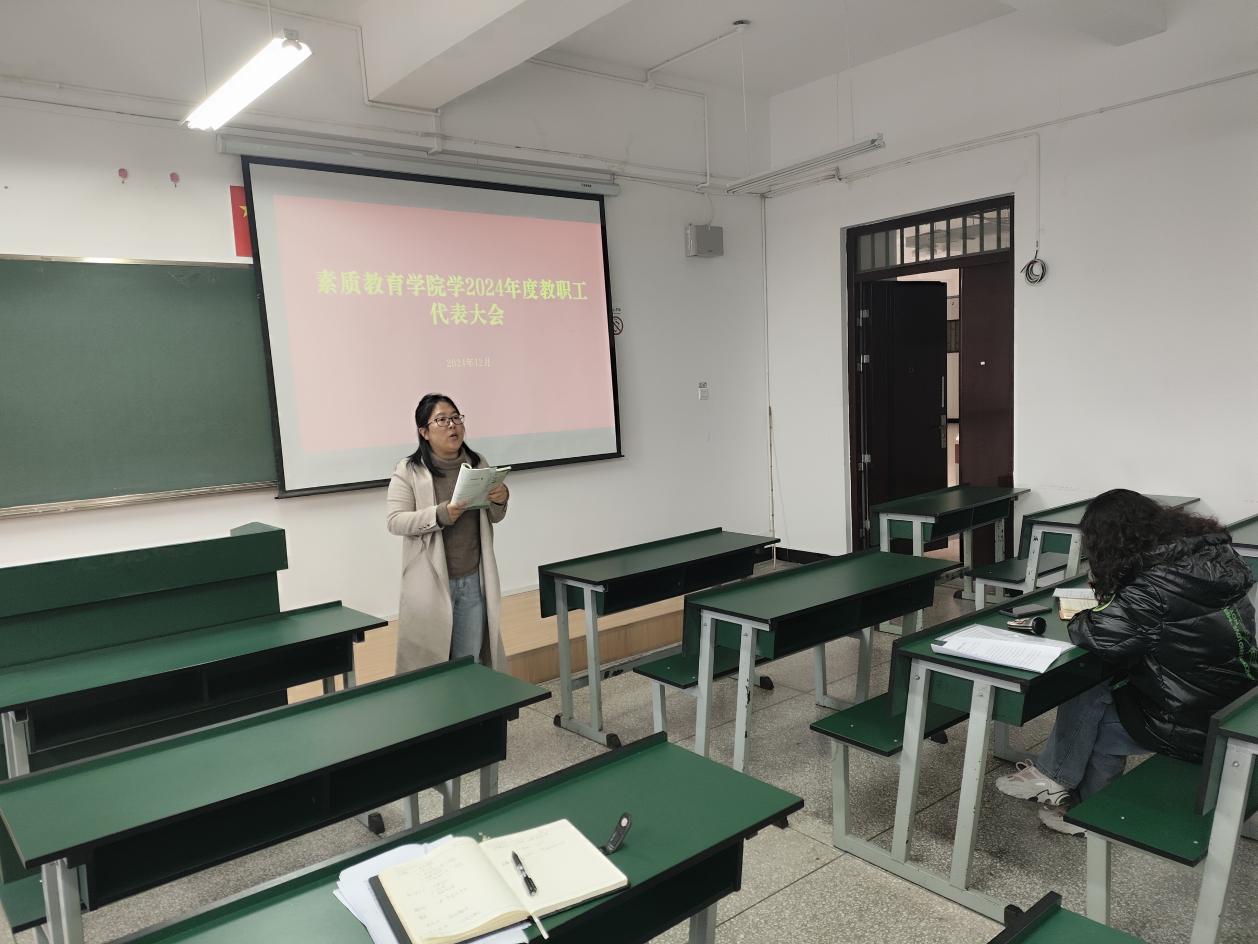 根据学校关于召开二级学院2024年度教职工代表大会的通知要求,素质教育学院于12月18日在笃行楼516召开了2024年度教职工代表大会。全体教职工参加会议。