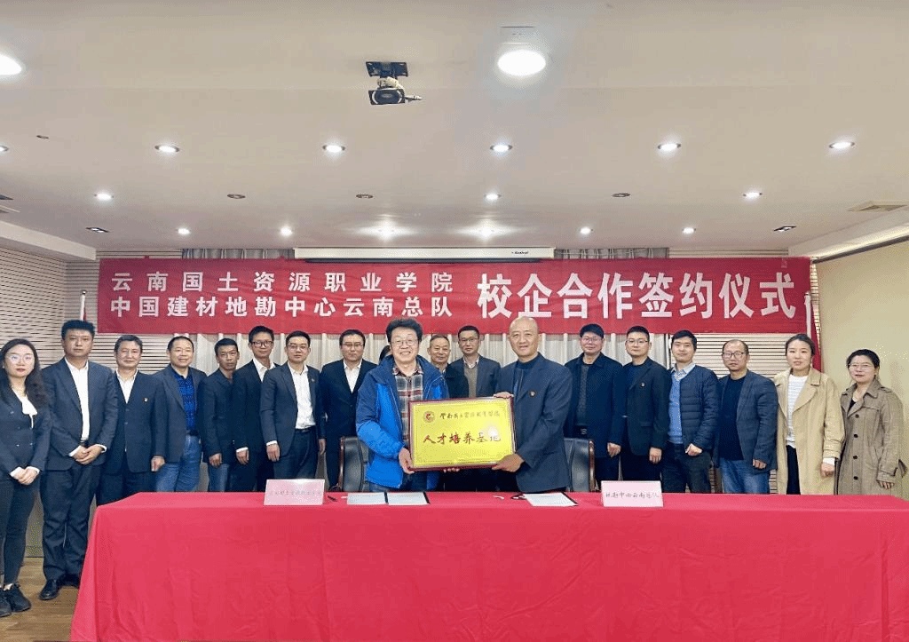云南国土资源职业学院与中国建材地勘中心云南总队/昆明中材勘察设计院有限公司签订校企合作协议暨授牌仪式